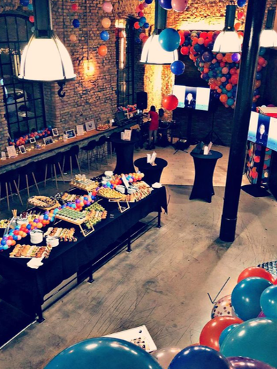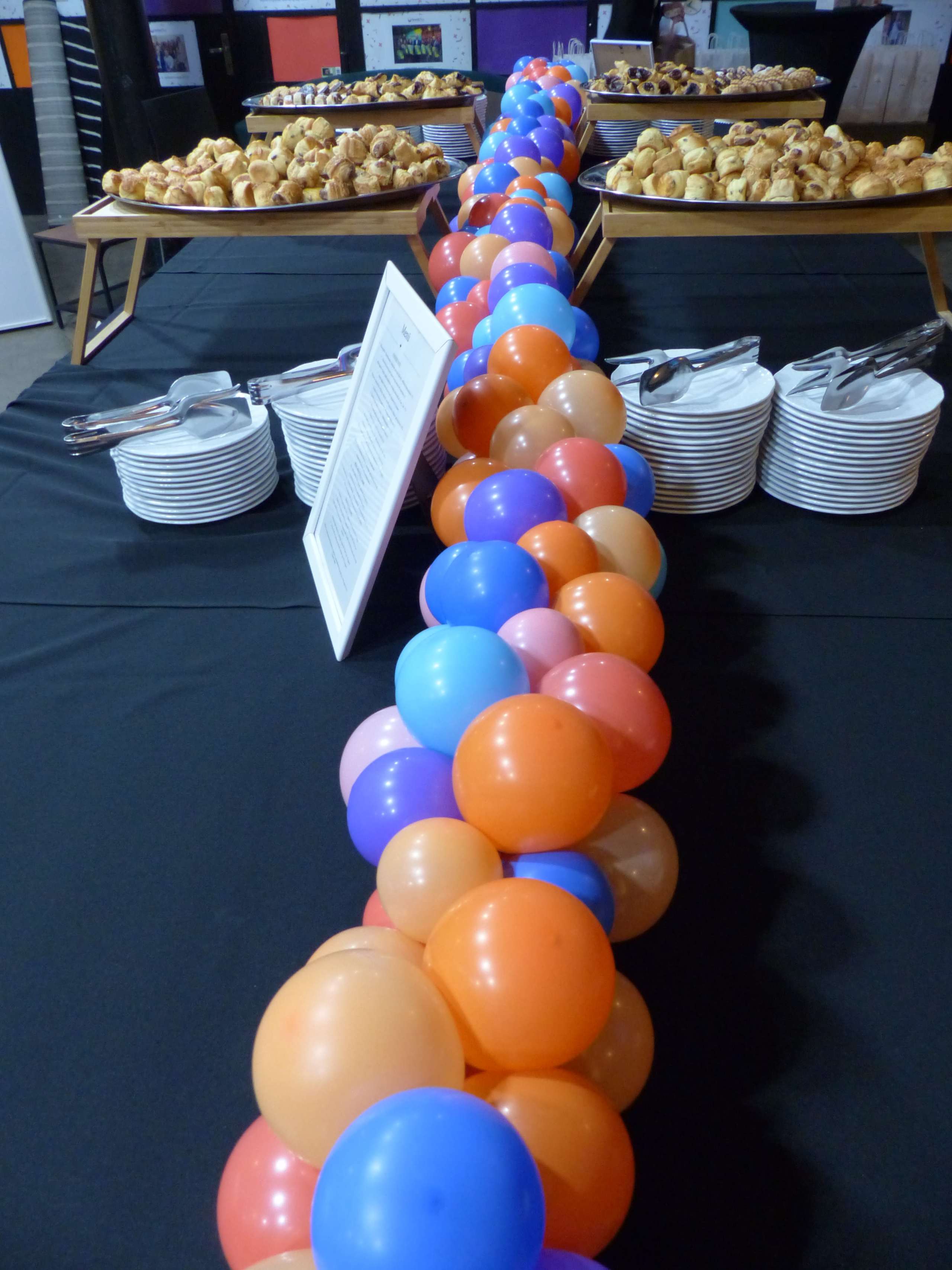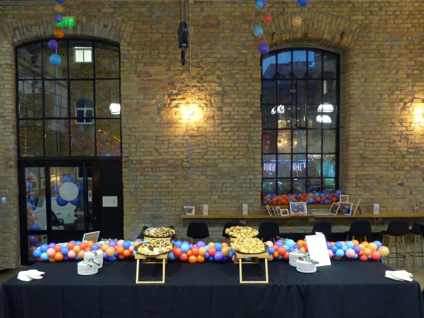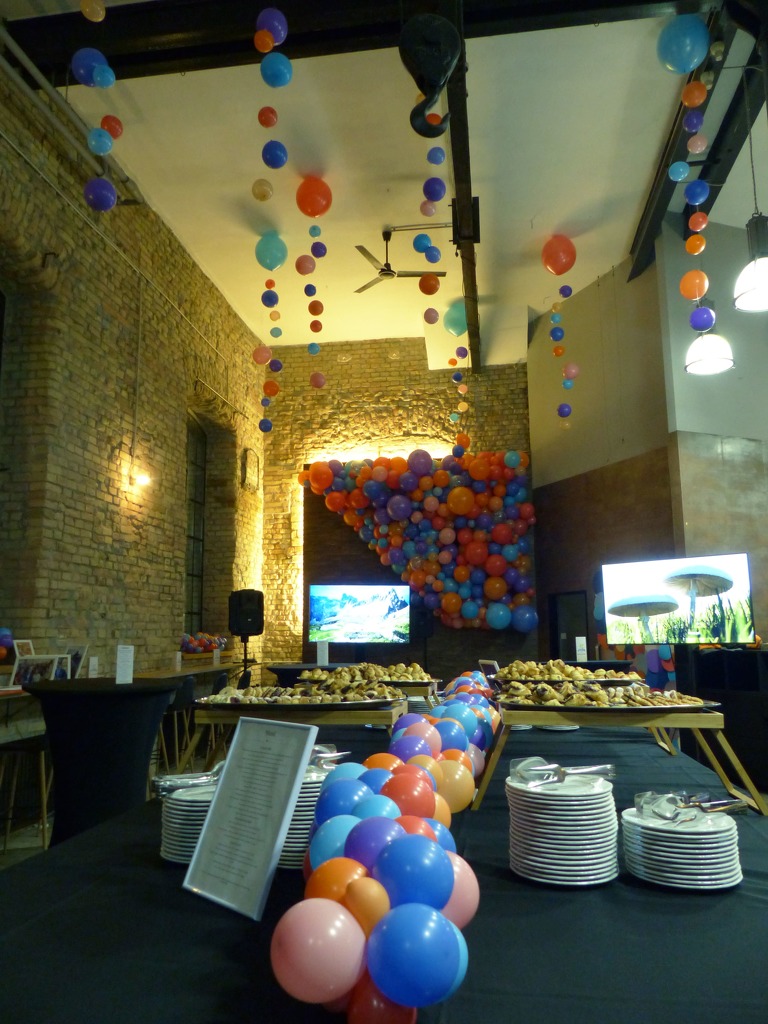 Colours, bubbles... AIR BUBBLES! Our decorator transformed the space into a champagne birthday party with lots of colourful, sustainability-minded, degradable balloons.
