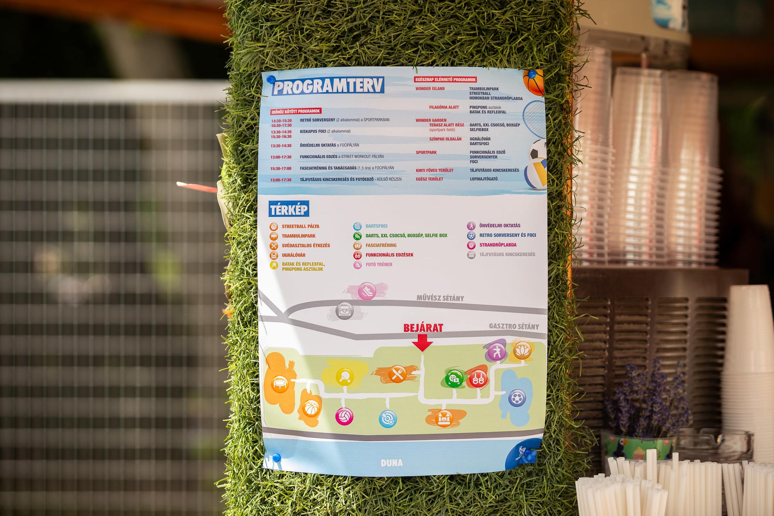 In June, we had the opportunity to organise a family sports day, for which we recommended the Wonder Island venue on Margaret Island. It's a place where you can feel like you've stepped into a whole other world: an island where you can listen to music, sip lemonade and enjoy the many facilities the venue has to offer, such as a huge trampoline park, a concrete sports field with a streetworkout track, or a sandy beach volleyball court with beanbag chairs. Using all Wonder Island has to offer, we've dreamed up a sports day where young and old can have fun and get moving.