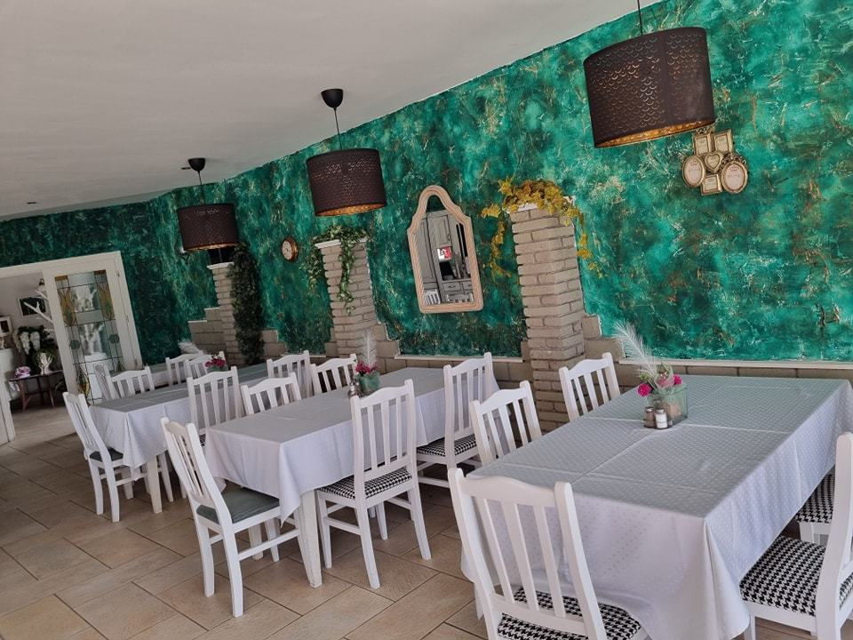 Éttermi részünkben 60 fő kényelmesen elfér, így kisebb konferenciákra és szekcióteremként is használható.