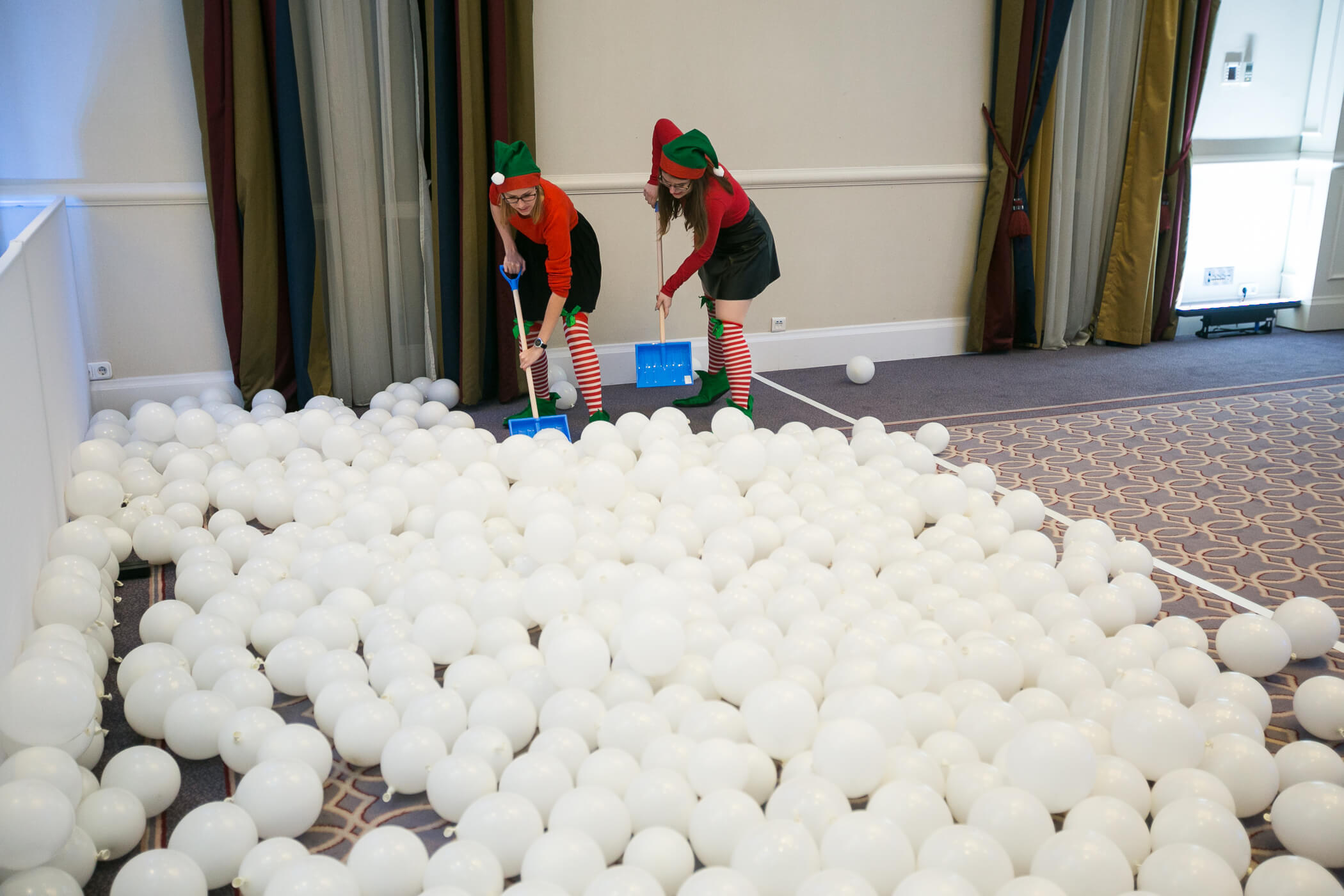 In the fast-paced team-building games at the various stations, participants could collect points to bid for super prizes at team level. Instead of using templates, we also came up with unique, personalised activities: snow shovelling proved to be a great fun activity, where the participants had to bring snow-white, tiny balloons from the winter garden to the garden of the elves in costume. For this, over 600 balloons - made of environmentally friendly materials - were blown up beforehand! We didn't mind, as everyone had a fantastic time! J